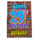 The front of this fun birthday gift bag design features the message “HAPPY 29TH BIRTHDAY,” having a colourful, vibrant, graffiti and urban street art inspired appearance, plus a personalised recipient name. The background features a brick wall inspired pattern. A giftbag like this might be a fun way of wrapping a birthday present or gift being given to somebody who is celebrating their 29th birthday. [~Z0000536]
