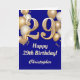 29th Birthday Navy Blue and Gold Balloons Confetti Card. For further customisation, please click the "Customise it" button and use our design tool to modify this template.