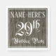 This fancy and ornate birthday themed paper napkin design features a personalised name and the message “29th Birthday Party”. The large number “29th” and the words “Birthday Party” are in luxurious script-style text, and the background has an imitation/faux woodgrain-inspired pattern. Elegant, elaborate paper napkins like this might be used at a birthday celebration/party being held to honour somebody’s 29th birthday. [~Z0000564]