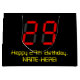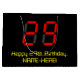 This silly and nerdy birthday themed gift bag design features a large number "29" having a red seven segment digital display style look, along with the message "Happy 29th Birthday," and a customisable name in geeky retro style yellow text, on a black coloured background. Customisable gift bags like this might be used when wrapping presents or gifts being given in honour of somebody’s twenty ninth birthday. [~Z0000389]