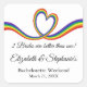 Make your bachelorette party or weekend extra special with our Rainbow Heart Lesbian Bachelorette Stickers! Designed to add a touch of pride and positivity to your celebration, they feature a vibrant LGBTQ rainbow heart graphic, perfect for celebrating love and friendship. Customise with both of the brides' names and details for a personal touch.