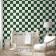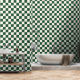 2" Chequerboard Dark Green & Ivory White Wallpaper