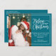 2 family photos teal Believe in Christmas magic Holiday Postcard