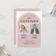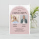 This modern graduation invitation features a design specifically for two graduates. The invite is perfect for brother and sister, twins, or friends. The background features a light dusty rose coloured arched shape.