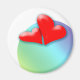 Be happy for Valentine's Day and forever! Lovely two red hearts on a blue half circle. Design on round magnet. Matching greeting card, button, keychain, sticker and more...