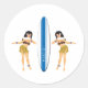 2 Hulas and Surf Board Classic Round Sticker