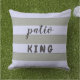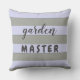 Text says "patio KING" on one side, and "garden MASTER" on the other. Text can easily be customised in order to create fun and relevant alternatives, maybe even contrasting on each side of the pillow. With several pillows it might even turn into some fun game.