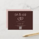 The 2 Intertwined Hearts with Initials Postcard makes a minimalist and elegant wedding announcement card. The announcement card in Dark Sienna and Light Dust Storm features a design of two hearts. Each heart holds one of the bride's initials and one of the groom's initials. The overlapping centre holds a plus sign.