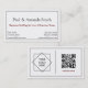 Simple and professional business card with black border and spot for two names and contact info. Perfect for a small business or a couple. The back has a spot for your logo or photo and a QR code that you can customise to lead to your website or social media.