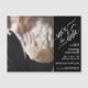 These magnetic cards are the perfect way to let your friends and family know to save the date for your upcoming wedding. Features a unique 2 pane design with your photo on the left and a black bar along the right with elegant script calligraphy reading "save the date" and all the details below. Simple, minimalist and beautiful.