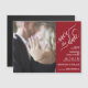 These magnetic cards are the perfect way to let your friends and family know to save the date for your upcoming wedding. Features a unique 2 pane design with your photo on the left and a crimson red coloured bar along the right with elegant script calligraphy reading "save the date" and all the details below. Simple, minimalist and beautiful.