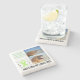 The coasters are gorgeous, a quality feel and heavy weight. They look like a precious archeological find. A rustic stone juxtaposed with a modern floral black and white print. I like the way the print goes slightly imperfect on the cut stone edges giving them a kind-of natural beauty.