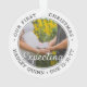 Celebrate the precious gift of your newest family member with a stylish two photo round acrylic ornament. Gender neutral design is suitable for a new baby boy or girl. Wording and pictures on this template are simple to personalise, and can be different or the same on front and back. (IMAGE & TEXT DESIGN TIPS: 1) To adjust position of wording, add spaces at beginning or end. 2) To centre the photo exactly how you want, crop it into a square shape before uploading to the Zazzle website.) Ideas for pictures could be an ultrasound, new parents or mother to be maternity photos, or images of baby shoes or onesy. Name, year, due date, and "Our First Christmas Expecting" quote is easy to change in case it's needed for another occasion. Design features a black and white overlay, stylish handwritten script calligraphy, and modern minimalist typewriter style typography. This unique pregnancy announcement keepsake adds an elegant touch to the expecting parents' or grandparents' Xmas home decorations.