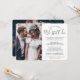If unexpected circumstances have caused a postponement of your wedding reception, the first anniversary is a perfect opportunity to celebrate a year later. Invite family and friends to a simply elegant 1st anniversary party with this stylish modern 2 photo invitation. All wording is simple to personalise, including quote that reads "one year later we still do." Customise the amount of time between the wedding ceremony and anniversary party, whether it's just a few months or a couple of years. Include any information of your choice, such as marriage date, vow renewal plans, post-elopement party details, sequel wedding ceremony location, dress code, rsvp, website, etc. (IMAGE PLACEMENT TIP: An easy way to centre a photo exactly how you want is to crop it before uploading to the Zazzle website.) The modern minimalist black and white design features two pictures of the newlyweds, trendy handwritten script calligraphy, and chic typewriter style typography. Whether you eloped, had a smaller downsized minimony or micro wedding, or your special day celebration had to be rescheduled due to a covid pandemic related postponement, the happily ever after party can still get started. Congratulations to the bride and groom!