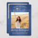 2 Photo Brushed Blue Gold Script Modern Graduation Announcement
