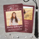 Share the joy of a high school or college graduation with these custom 2 photo red, white and silver announcements. (IMAGE PLACEMENT TIP: An easy way to centre a picture exactly how you want is to crop it before uploading to the Zazzle website.) This template includes graduate name, class year & school, and is simple to customise with any wording of your choice, such as party invitation details, parents' names, special honours, degree title, favourite inspirational quote, graduate's contact info, future education plans, or new job position. If there's any text not wanted simply delete it. Design features a burgundy / maroon red brushed background, faux foil mortar board cap, handwritten style script calligraphy, modern minimalist typography, and two photos of your choice, such as senior pictures or images from the commencement ceremony. Please note that background is printed colour not metallic foil. These elegant graduation announcement cards are a stylish way to share your special day celebration with family and friends. Congratulations to the graduate!