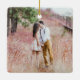 2 Photo Christmas Engagement Green and Faux Gold Ceramic Ornament