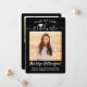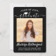Share the joy of a high school or college graduation with these custom 2 photo black, white and silver announcements. (IMAGE PLACEMENT TIP: An easy way to centre a picture exactly how you want is to crop it before uploading to the Zazzle website.) This template includes graduate name, class year & school, and is simple to customise with any wording of your choice, such as party invitation details, parents' names, special honours, degree title, favourite inspirational quote, graduate's contact info, future education plans, or new job position. If there's any text not wanted simply delete it. Design features a black background, faux brushed stainless steel mortar board cap, handwritten style script calligraphy, modern minimalist typography, and two photos of your choice, such as senior pictures or images from the commencement ceremony. Please note that silver is printed colour, not metallic foil. These elegant graduation announcement cards are a trendy and chic way to share your special day celebration with family and friends. Congratulations to the graduate!