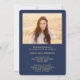 Share the joy of a high school or college graduation with these custom 2 photo navy blue and gold announcements. (IMAGE PLACEMENT TIP: An easy way to centre a picture exactly how you want is to crop it before uploading to the Zazzle website.) This template includes graduate name, class year & school, and is simple to customise with any wording of your choice, such as party invitation details, parents' names, special honours, degree title, favourite inspirational quote, graduate's contact info, future education plans, or new job position. If there's any text not wanted simply delete it. Design features a dark blue ombre background, faux foil mortar board cap, handwritten style script calligraphy, modern minimalist typography, and two photos of your choice, such as senior pictures or images from the commencement ceremony. Please note that gold is printed colour, not metallic foil. These elegant graduation announcement cards are a trendy and chic way to share your special day celebration with family and friends. Congratulations to the graduate!