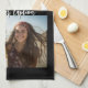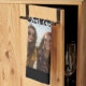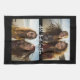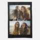 2 Photo Collage with Trendy Script Caption - black Tea Towel