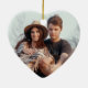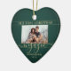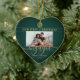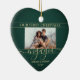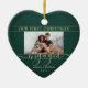 2 Photo First Christmas Engaged Green & Gold Heart Ceramic Ornament