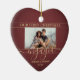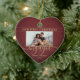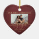 Celebrate the joyful 1st holiday of your engagement with a custom heart-shaped 2 photo "Our First Christmas Engaged" ceramic ornament. All text and images on this template are simple to personalize. (IMAGE PLACEMENT TIP: An easy way to center a photo exactly how you want is to crop it before uploading to the Zazzle website.) As an idea, the script typography can read "Together" or "Married." Design features a stylish burgundy red ombre and gold border, handwritten style calligraphy, the couple's names & year, and two pictures of your choice. Please note that gold is printed color, not metallic foil. This unique wedding keepsake adds an elegant touch to Xmas home decorations.