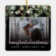 2 Photo First Christmas Engaged Winter Greenery Ceramic Ornament