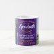 Commemorate the graduate's achievement with this custom 2 photo purple and gold yellow coffee mug. Pictures and all text are simple to customise. Include any favourite inspirational quote, motivational saying, school name and degree, congratulations, thanks mum and dad, or other message of your choice. Design features a mortar board cap, personalised modern typography name, school, & class year, and two photos of your choice, such as senior pictures or images from the commencement ceremony. Makes a thoughtful keepsake gift idea and an elegant addition to home decor. Congratulations to the graduate!