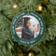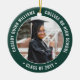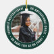 Commemorate the graduate's achievement with an elegant green and white custom two photo round graduation Christmas ornament. Pictures and all text are simple to customise and can be different on front and back. Include any favourite inspirational quote, motivational saying, school name and degree, congratulations, thanks mum and dad, or other message of your choice. Design features a green border, personalised modern typography name, school, & class year in a circle, and 2 photos of the graduate, such as senior pictures or images from the commencement ceremony. Makes a thoughtful keepsake graduation gift idea.