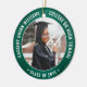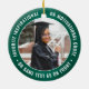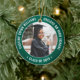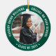 Commemorate the graduate's achievement with an elegant green and white custom two photo round graduation Christmas ornament. Pictures and all text are simple to customise and can be different on front and back. Include any favourite inspirational quote, motivational saying, school name and degree, congratulations, thanks mum and dad, or other message of your choice. Design features a green faux brushed stainless steel border, personalised modern typography name, school, & class year in a circle, and 2 photos of the graduate, such as a senior pictures or images from the commencement ceremony. Makes a thoughtful keepsake graduation gift idea.