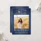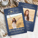 2 Photo Graduation Modern Script Brushed Navy Gold Invitation
