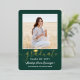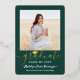 Invite family and friends to celebrate a high school or college graduation with stylish custom 2 photo green, white and gold foil invitations. Pictures and wording are simple to personalize. (IMAGE PLACEMENT TIP: An easy way to center a photo exactly how you want is to crop it before uploading to the Zazzle website.) Front of design is printed with real metallic foil on a green background. It features a mortar board cap, handwritten style script calligraphy, elegant modern typography, and two photos of your choice, such as senior pictures or images from the commencement ceremony. This elegant graduation invitation card is a trendy and chic way to begin your special day celebration. Congratulations to the graduate!