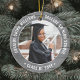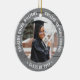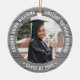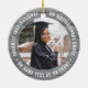 Commemorate the graduate's achievement with an elegant faux grey wood and white custom two photo round graduation Christmas ornament. Pictures and all text are simple to customise and can be different on front and back. Include any favourite inspirational quote, motivational saying, school name and degree, congratulations, thanks mum and dad, or other message of your choice. Design features a rustic grey wood look border, personalised modern typography name, school, & class year in a circle, and 2 photos of the graduate, such as senior pictures or images from the commencement ceremony. Makes a thoughtful keepsake graduation gift idea.
