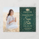 2 Photo Graduation Save the Date Green and Gold Announcement Postcard