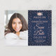 2 Photo Graduation Save the Date Navy Pink Gltter Announcement Postcard