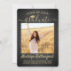 Share the joy of a high school or college graduation and invite family and friends to celebrate with these custom 2 photo black and gold party invitations. All pictures and wording are simple to personalise. (IMAGE PLACEMENT TIP: An easy way to centre a picture exactly how you want is to crop it before uploading to the Zazzle website.) This template is formatted for a graduation party, but can easily be customised as an open house invite or announcement card. Simply change the text to include any details of your choice, such as parents' names, special honours, degree title, favourite inspirational quote, graduate's future plans or new address. If there's any text not wanted simply delete it. Design features a black brushed background, faux foil mortar board cap, handwritten style script calligraphy, modern minimalist typography, and two photos of your choice, such as senior pictures or images from the commencement ceremony. Please note that gold is printed colour, not metallic foil. These elegant graduation announcement cards are a stylish way to share your special day celebration with family and friends. Congratulations to the graduate!