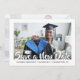 If unexpected circumstances have caused a postponement or cancellation of your graduation party, inform family and friends of the change in plans with these simple modern minimalist save the new date postcard invitations. All photos and text are simple to customise to include graduate name, class year, school, and other event details. (IMAGE PLACEMENT TIP: An easy way to centre a photo exactly how you want is to crop it before uploading to the Zazzle website.) Design features handwritten style script calligraphy, stylish vintage art deco inspired typography, and 2 photos of your choice, such as senior pictures or images from the commencement ceremony. This elegant graduation announcement card is a trendy and chic way to begin your special day celebration and to invite guests to resave your new rescheduled date. Congratulations to the graduate!