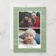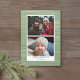 Use 2 horizontal pictures and make a unique and trendy Holiday greeting with a simple modern abstract pattern in the background. It has a painted look with a natural motion design in shades of green. An upscale, subtle design with an area to add two family photos and the name and greeting.