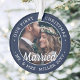 2 Photo Newlyweds 1st Xmas Married Navy Blue White Ornament