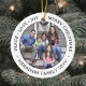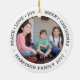 Celebrate the simple joys of the holidays with a custom two photo black and white round ceramic ornament. All text and pictures on this template are simple to personalise and can be different or the same on front and back. If preferred, change "Peace Love Joy Merry Christmas" to any quote or saying. (IMAGE & TEXT DESIGN TIPS: 1) To adjust position of wording, add spaces at beginning or end. 2) To centre the photo exactly how you want, crop it into a square shape before uploading to the Zazzle website.) Modern minimalist design features a simple black and white border, stylish typography name and year, and 2 images of your choice. This unique family keepsake adds an elegant touch to Xmas home decorations.