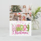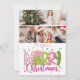 2 Photo Pink Green Bow Tree Merry Christmas Holiday Card