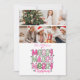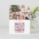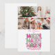 Celebrate the season in cheerful style with this vibrant photo holiday card featuring a stacked “Merry Merry Merry Christmas” design in festive pinks and greens. Playful patterns like plaid, polka dots, and stripes add a charming, modern twist. The top section includes space for two favourite family photos, while the customisable text allows you to add your family name and the year for a personal touch. A sweet way to send warm wishes and memories to friends and loved ones.