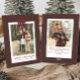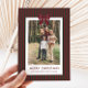 2 Photo Retro Christmas Red Bow Green Stripped Holiday Card