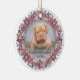 2 Photo Retro Holiday Floral Christmas Wreath Ceramic Ornament