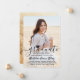 Share the joy of a high school or college graduation with stylish custom 2 photo overlay announcements. All pictures and wording are simple to personalise. (IMAGE PLACEMENT TIP: An easy way to centre a photo exactly how you want is to crop it before uploading to the Zazzle website.) This template can be customised with any details of your choice, such as party invitation info, parents' names, special honours, degree title, favourite inspirational quote, graduate's new contact info, future education plans, or job position. The modern minimalist design features trendy script calligraphy typography, cute mortar board cap, and two photos of your choice, such as senior pictures or images from the commencement ceremony. These chic graduation announcement cards are an elegant way to share a special day celebration with family and friends. Congratulations to the graduate!