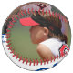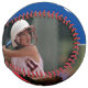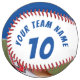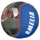 2 Photo Softball with Player Name, Number, Team name in Blue and White. You can make your own unique softball with your name, player number, team name and 2 photos. Great keepsake gift idea or a keepsake for baseball players.