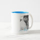 Fully customisable personalised double sided 2 photo template & light blue love text on two-tone mug.