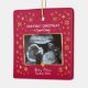 Celebrate the joy of anticipation with our elegant ceramic ornament, featuring “Our First Christmas Expecting,” baby’s name, due date, customisable sonogram and photo, plus a heartfelt message on the back. Red background with falling gold stars makes this keepsake a timeless treasure for parents-to-be.