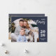 This elegant and modern Christmas greeting card features a minimalist design displaying 2 of your favourite family pictures inside trendy arch frames. Easily customisable with your family name and the current year in stylish serif fonts over a classic blue background on the front and with your personal greeting message in a white classic serif font on the back.