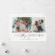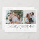 Modern script simple elegant black and white family 2 photos Merry Christmas holiday card with text template on the backside.